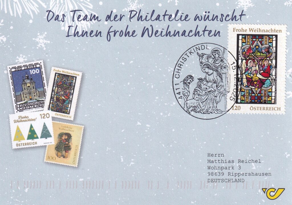 Sammlerfreund Anton Katzlberger wünscht Frohe Weihnechten mit einem sehr schönen Sonderstempel und passende Marken