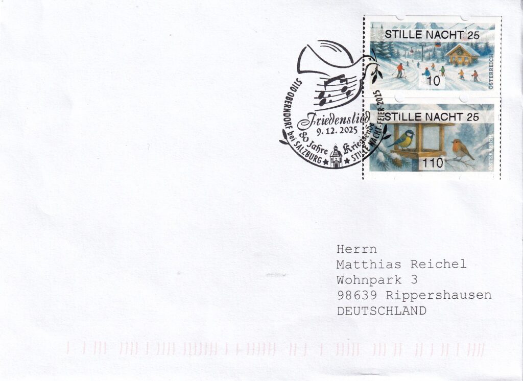 Sammlerfreund Anton Katzlberger wünscht Frohe Weihnechten mit einem sehr schönen Sonderstempel und passende Marken