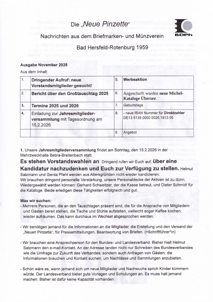 Wird zum Vereinsabend Dezember am 9.12.2025 in Umlazf gegeben, bzw. kann auch hier eingesehen werden.