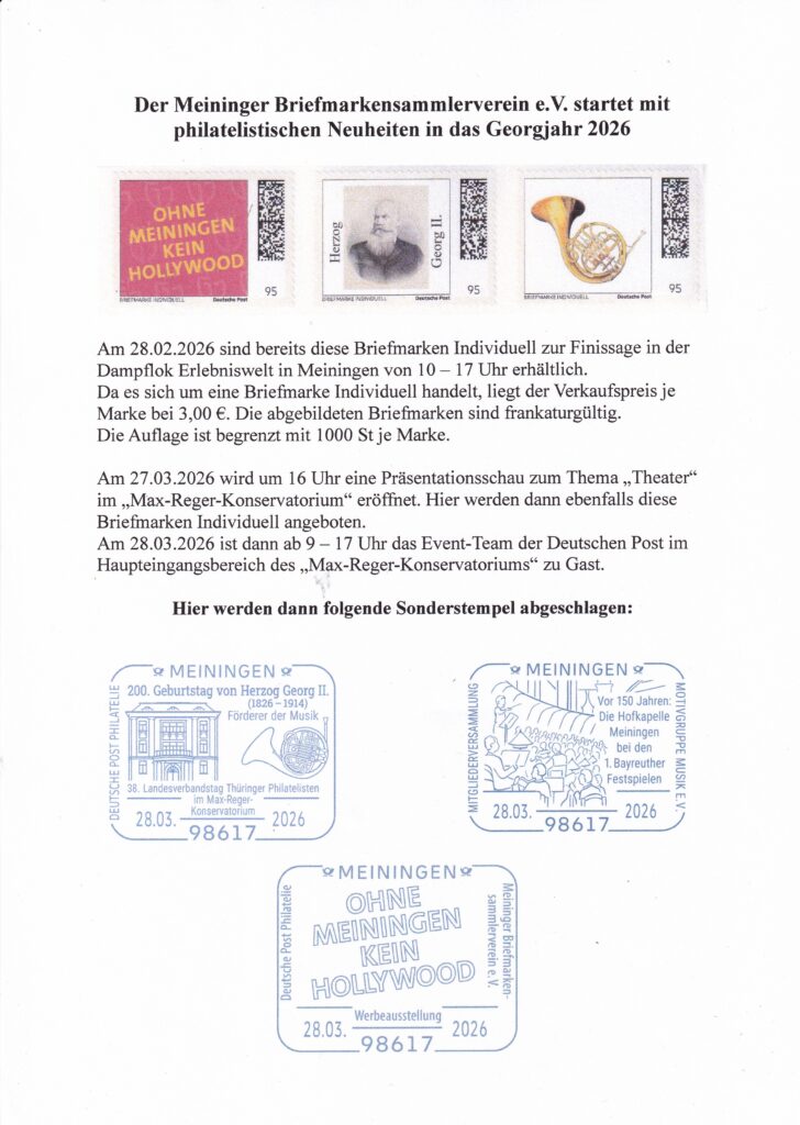 Der Meininger Briefmarkensammlerverein e.V. startet mit philatelistischen Neuheiten in das Georgjahr 2026