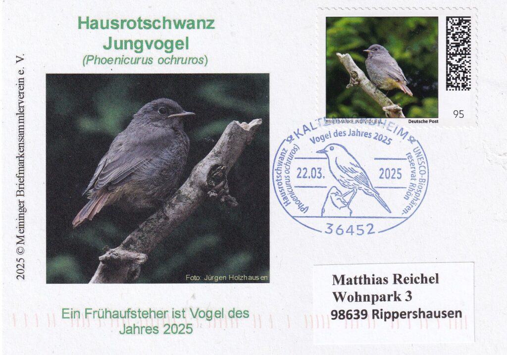 Grüße an alle Vereinsmitglieder mit Sonderstempel zum Thema „Vogel des Jahres 2025“